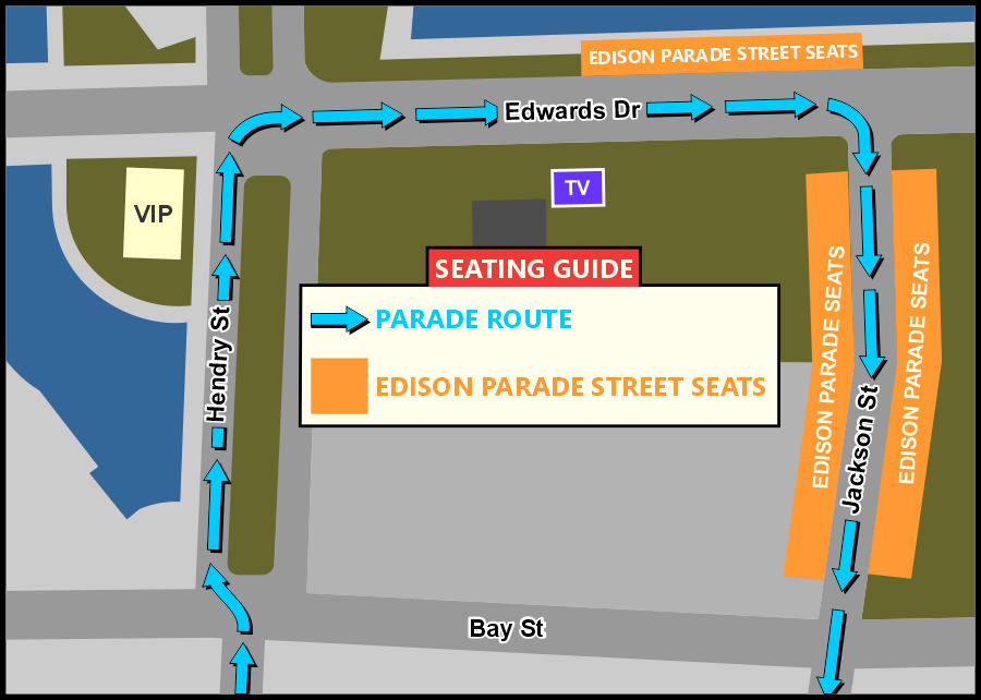 Edison Festival of Light Parade Seats along Edwards Drive, and both sides of Jackson Street.